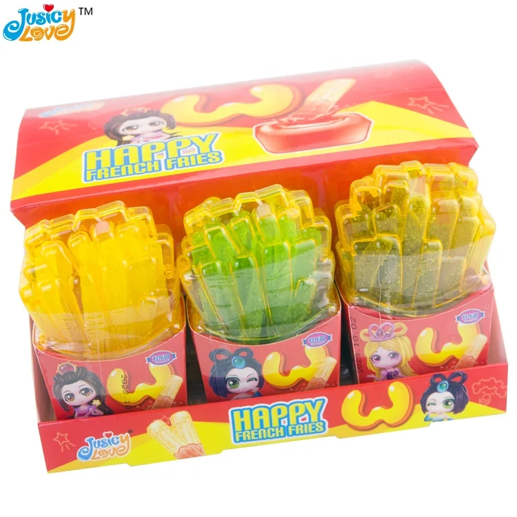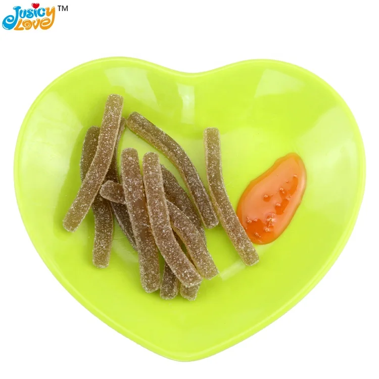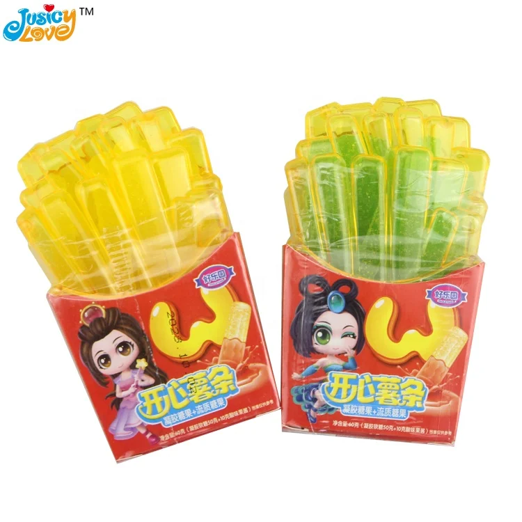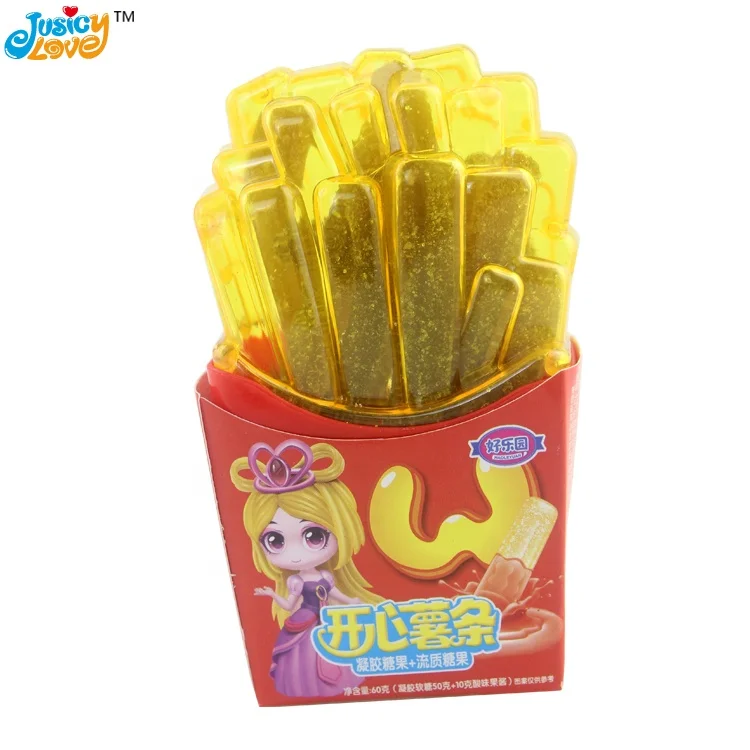 Hot Selling Wholesale French Fries Shape Fruity Sweet Gummy Soft Candy With Fruity Jam