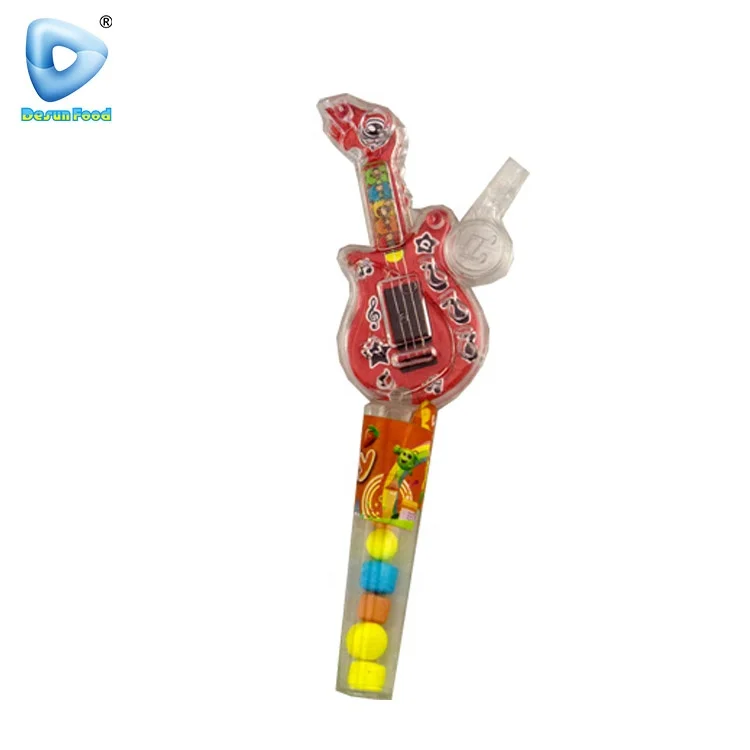 Hot Selling Wholesale Plastic Guitar Shape Whistle Toy With Candy