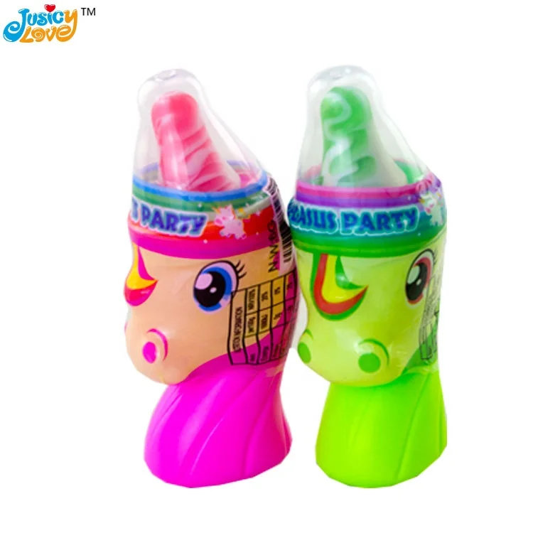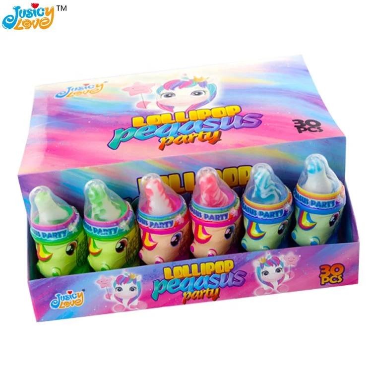 Hot Selling Funny Unicorn Shape Lollipop Hard Candy With Sour Powder