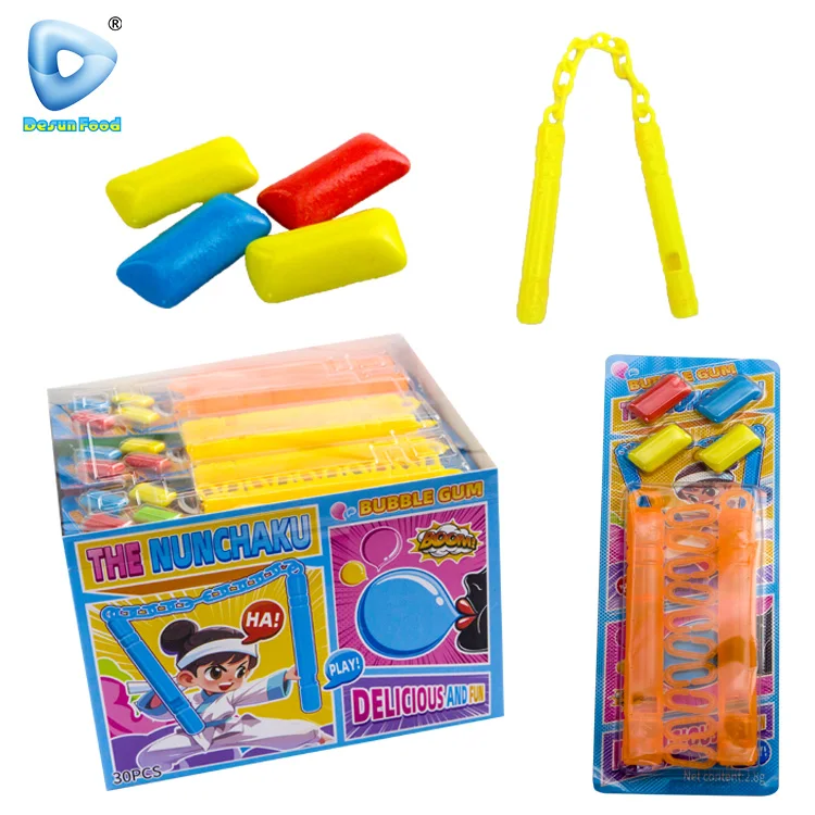 Hot Selling Colorful Plastic Nunchakus Toys With Bubble Gum Candy
