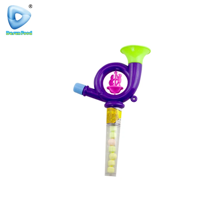 Hot Selling Cheap Plastic Funny Colourful Happy Trumpet Toy Candy