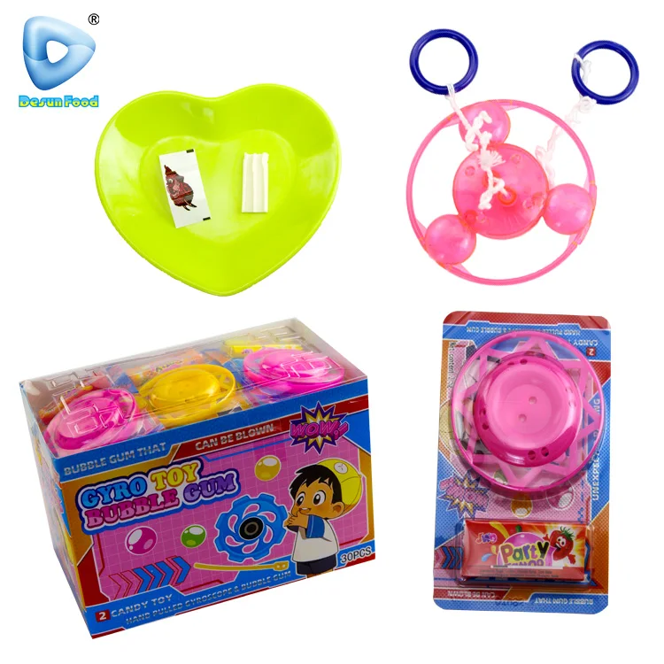 Hot Selling Plastic Flywheel Spinning Toys and Bubble Gum Candy With Tattoo