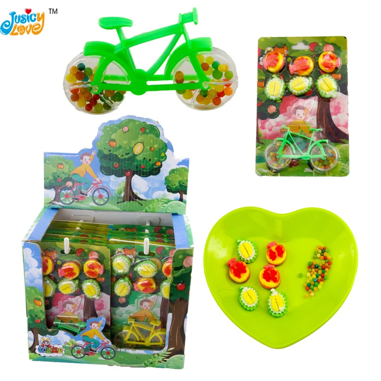 Wholesale Plastic Bicycle Toy With Fruit Shape Gummy Soft Candy and Mini Candy