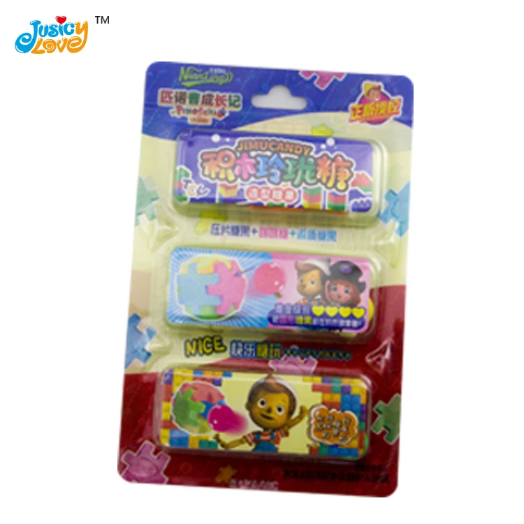 Building Block Fruit Flavor Hard Candy With Liquid Jam Candy and Popping Candy