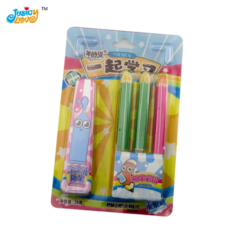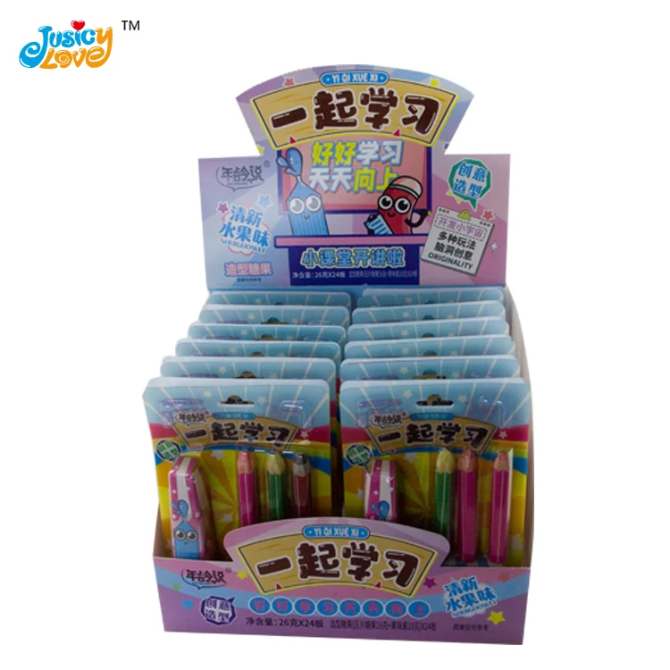 Stationery Pencil Fruit Flavor Sweet Hard Candy With Liquid Jam Candy Supplier