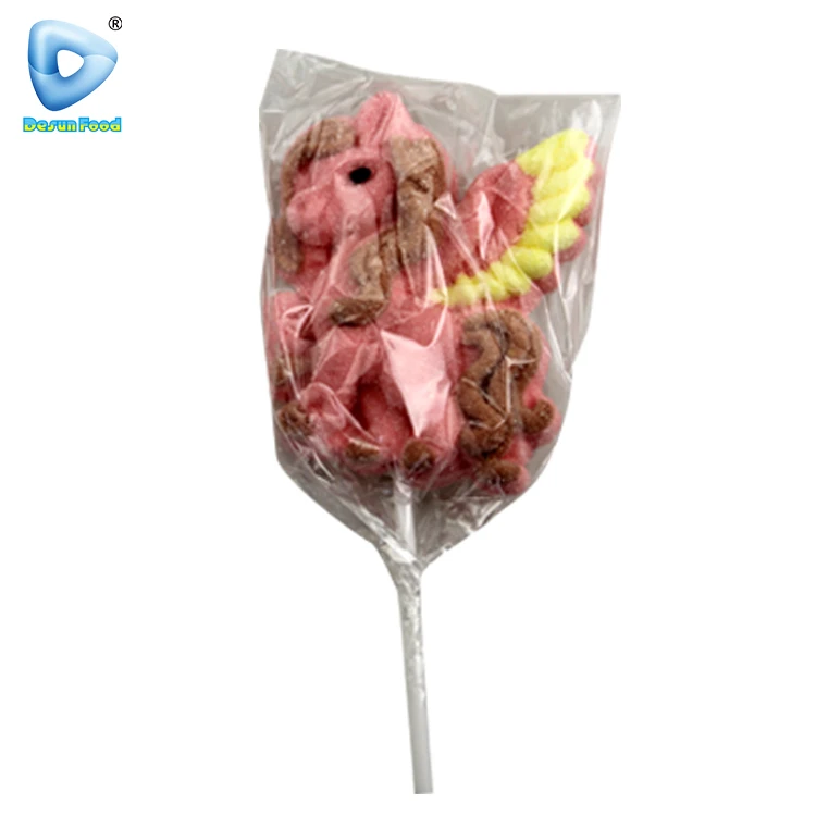 Hot Selling Cartoon Horse Shape Fruit Flavor Marshmallow Lollipop Candy