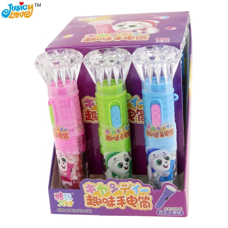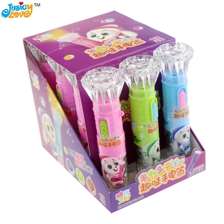 Hot Selling Lighting Diamond Torch Shape Flashlight Toy With Lollipop Candy