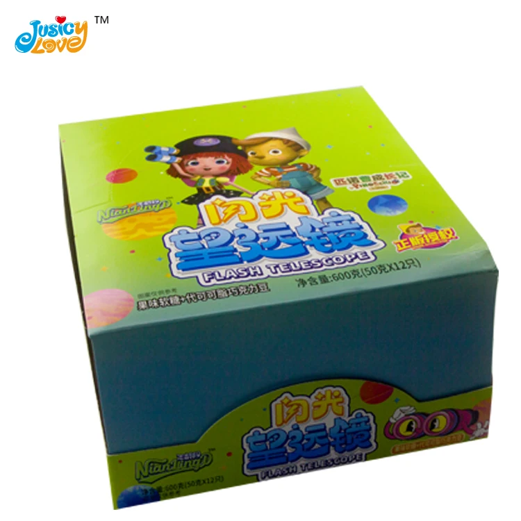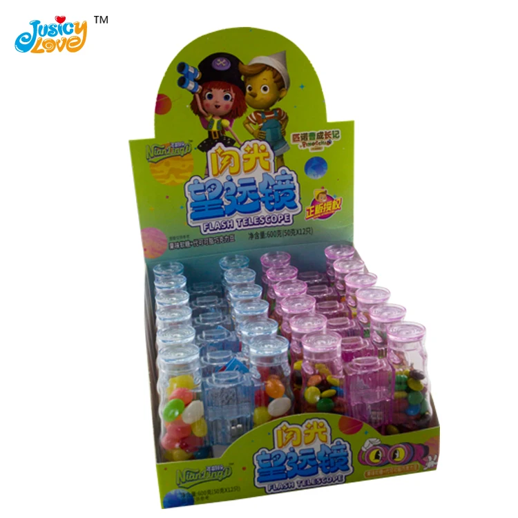 High Quality LED Flashing Telescope Bottle Toy Chocolate Bean With Jelly Beans Candy