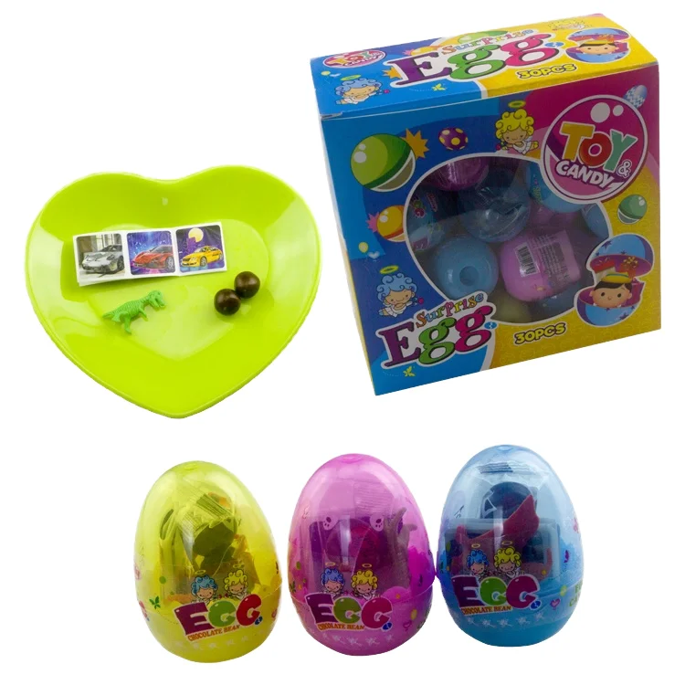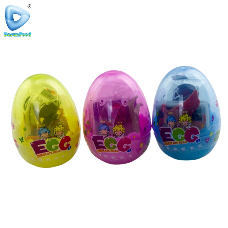 Hot Selling Funny Plastic Surprise Egg Toys and Chocolate Beans Candy with Card