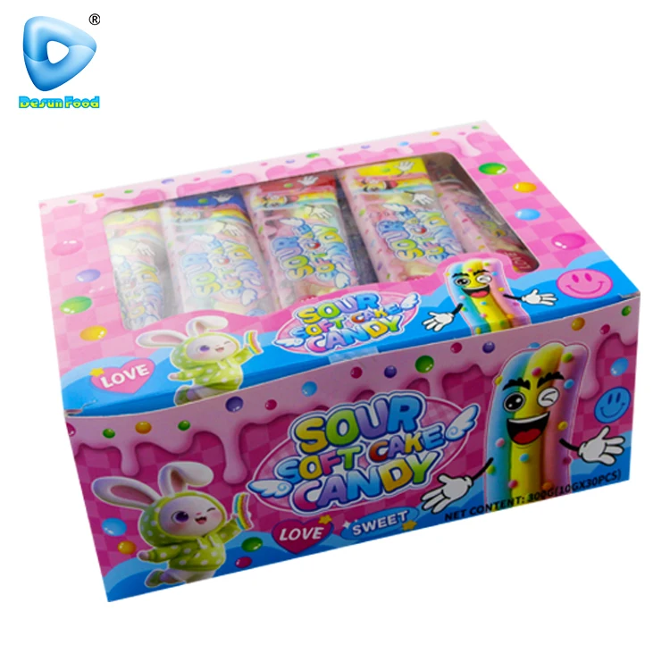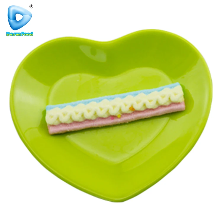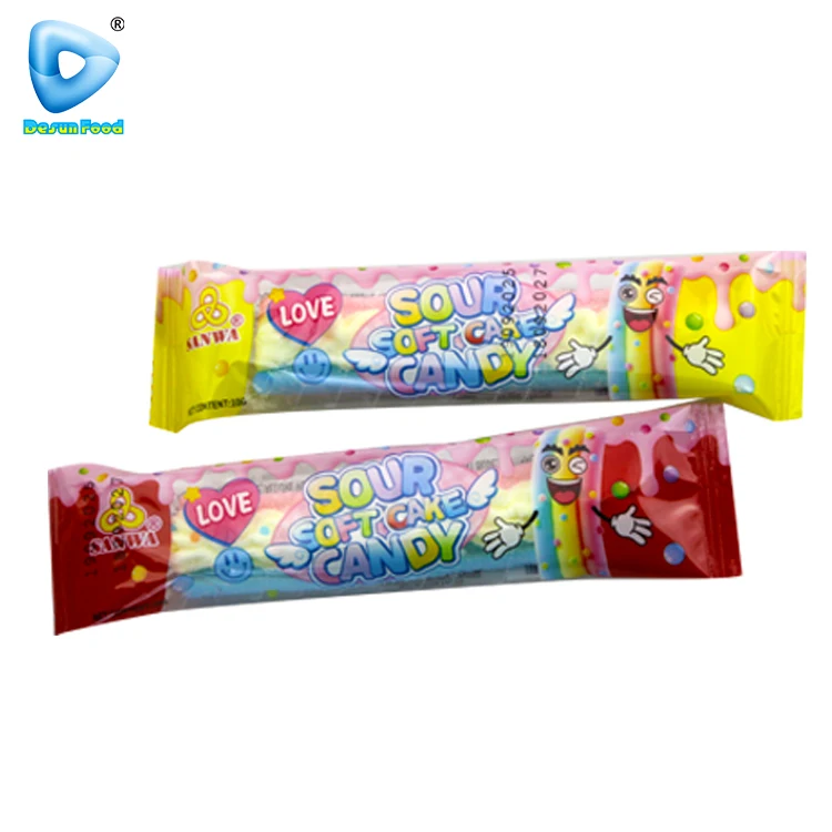 Hot Selling Rainbow Cake Shaped Fruit Flavour Sour Soft Marshmallows with Mini Candy