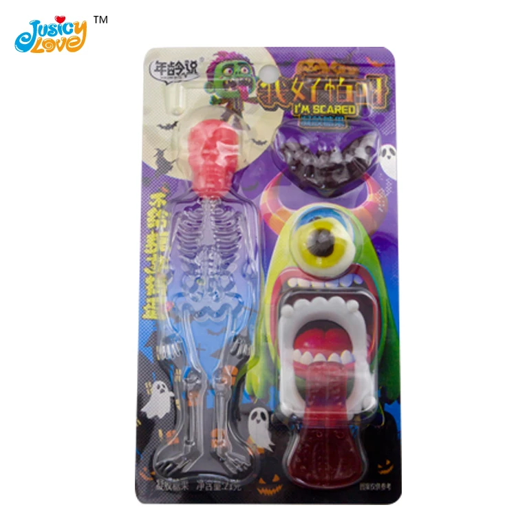 Halloween Eyeball Gummy Candy Tongue Shaped Soft Candy and Skeleton Skull Lollipop Candy