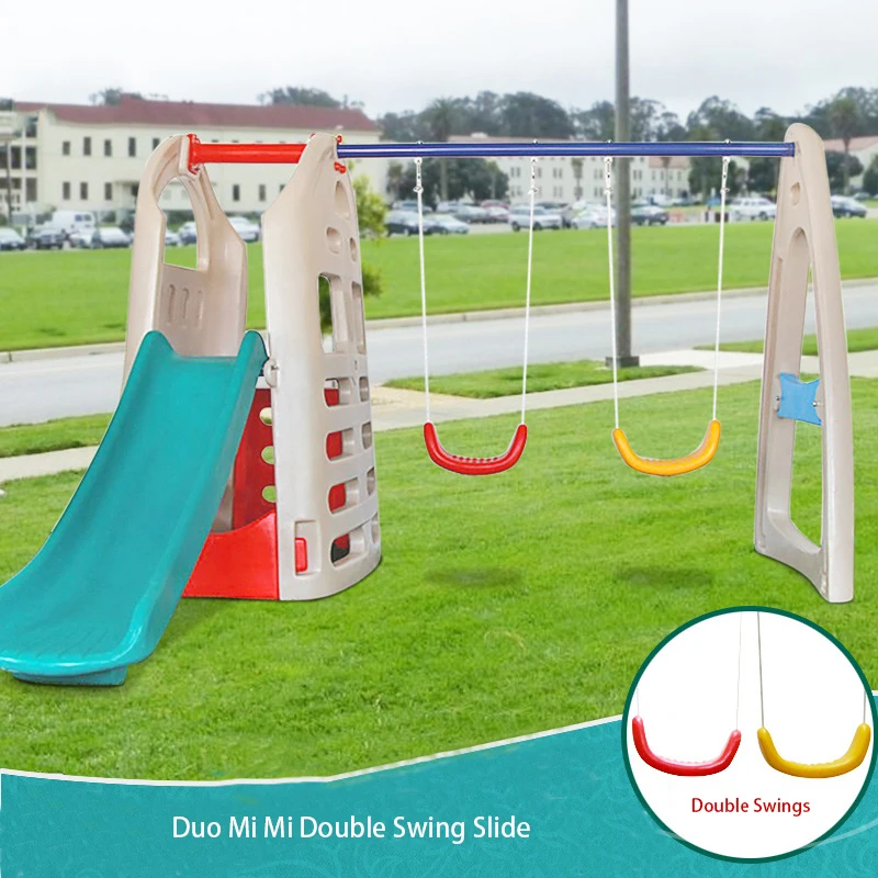 Children Indoor Outdoor Colorful Plastic Duo Mimi Swing Slide Combination