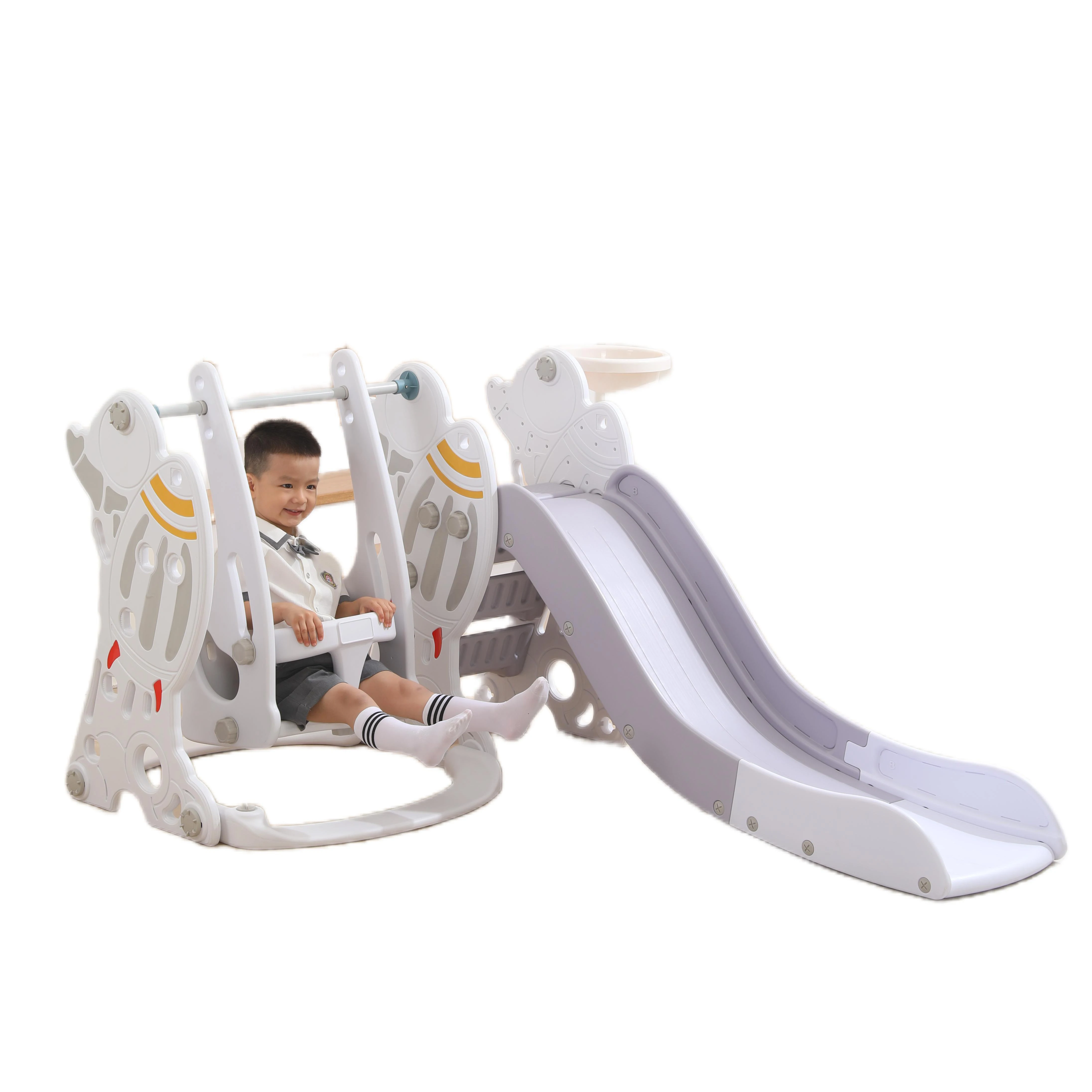 3 in 1 Rocket Kids Indoor Plastic Slide and Swing Home Slide and Swing Combination