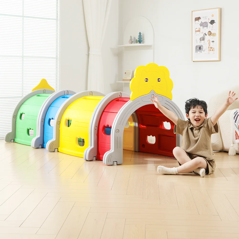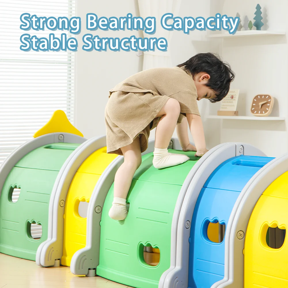 2026 New Trend Green Durable Plastic Dinosaur Tunnel Kindergarten Indoor Dinosaur Playground Tunnel Toy Climbing Drilling Play