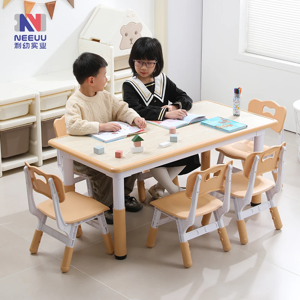 Modern Design Plastic Chair Table Set Large Desktop for Drawing Learning 1 Table 4 Chairs for School Bedroom Living Room