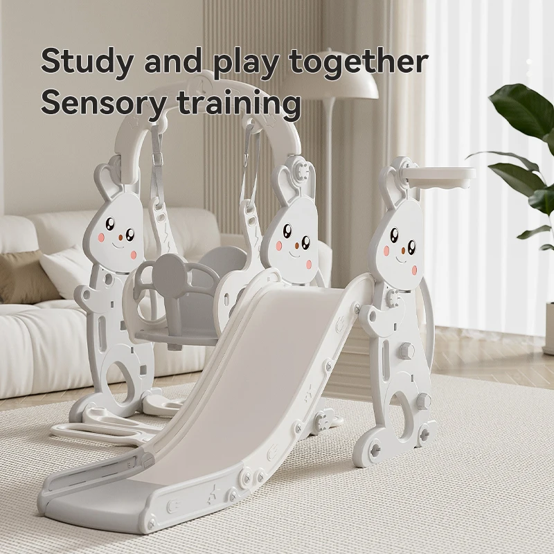 Simple Design High Quality Cheap Price Indoor Rabbit Shape Customizable Home Swing and Slide Set for Kids Basketball Hoop