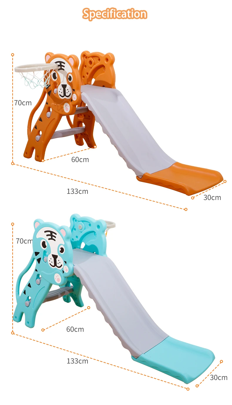 Factory Sale Home Mini Plastic Kids tiger Folding Slide with Basketball Hoop for Outdoor Play in Garden Park Amusement Park