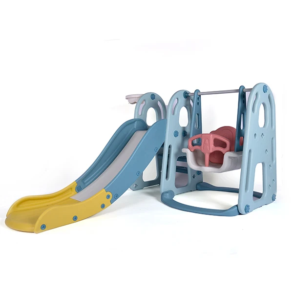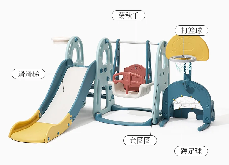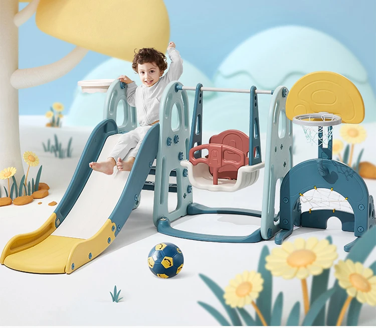 Factory Price Cheap 5 in 1 Combination Kids Plastic Slide Indoor Baby Swing with Football Basketball Stand