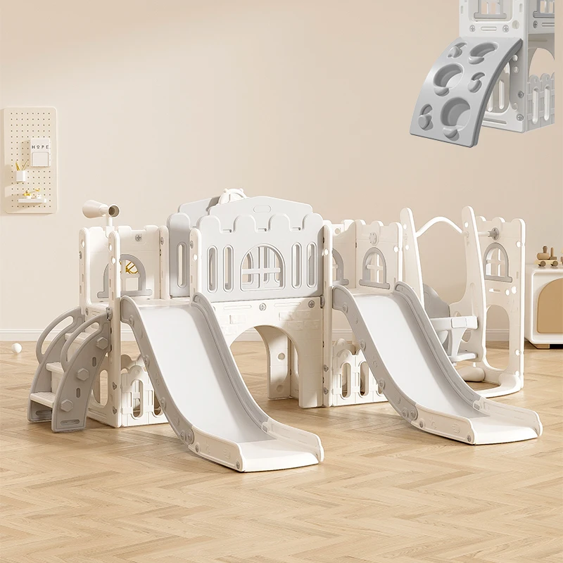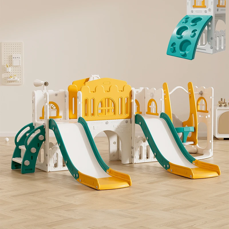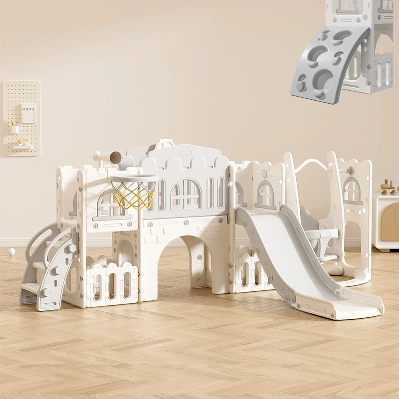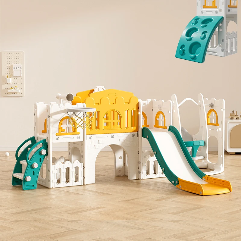 Multifunctional Indoor Toddler Playground Fun Slide with Telescope Climber Basketball Hoop Swing Kids' Indoor Play Equipment