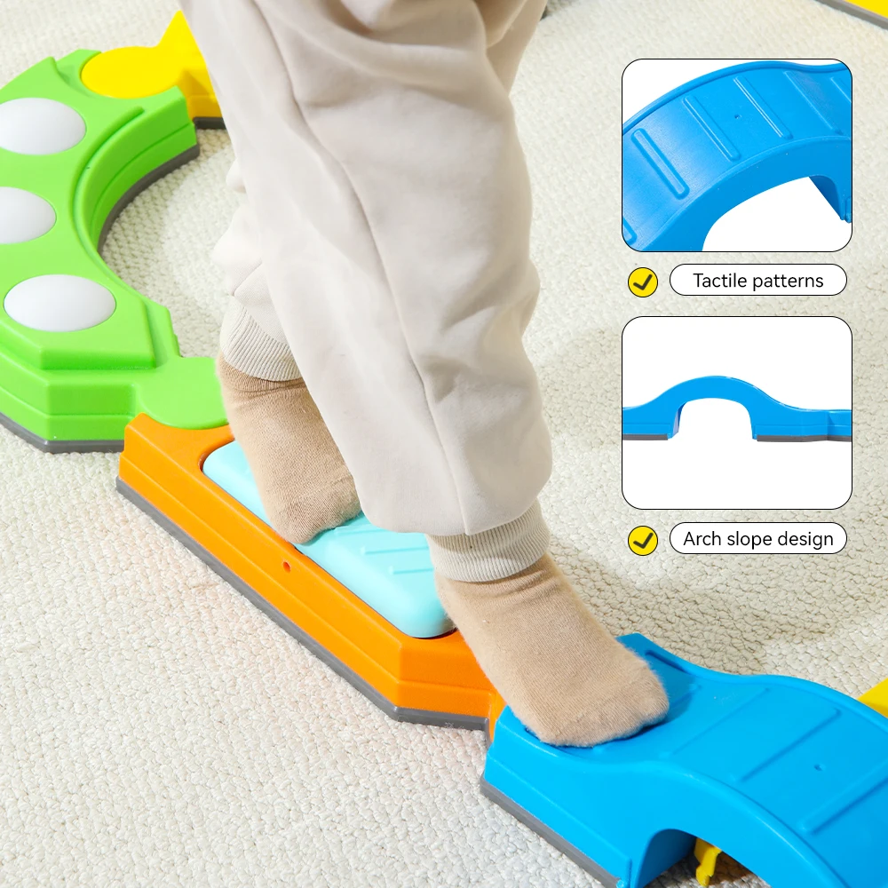 Colorful Indoor Home Vestibular Exercise Toy Plastic Balance Tactile Board with Unicycle Bridge Beam Splicing Toy