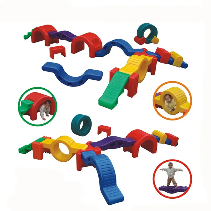Factory Wholesale Colorful LLDPE Material 12pcs Combining Plastic Balance Beam Seesaw Drilling Toys