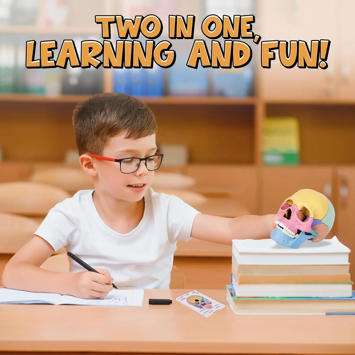EPT STEM Toy Medical Science Anatomy 17pcs Human Skull Model with 10 Educational Cards DIY 3D Anatomy Puzzle Toy
