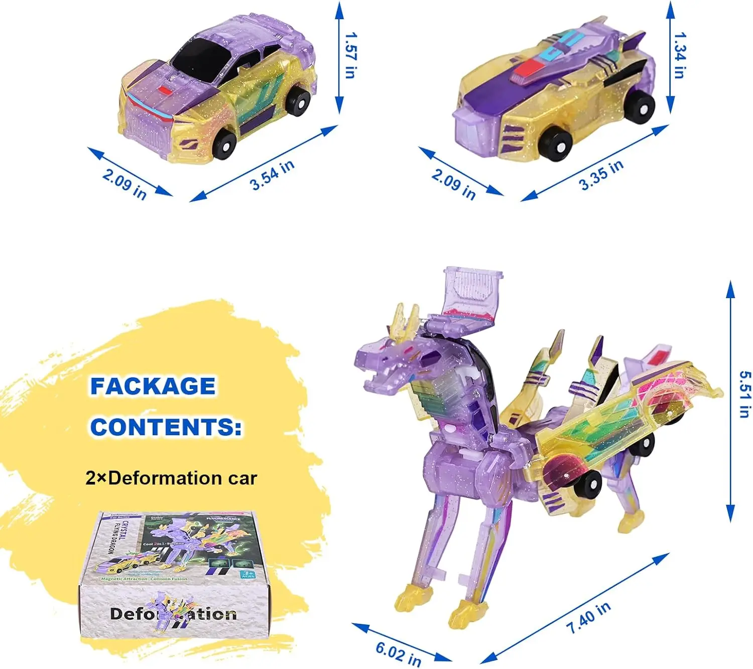EPT New Crystal Flying Dragon 2 in 1 Magnetic Cars Collision Transform Into Dino Toys