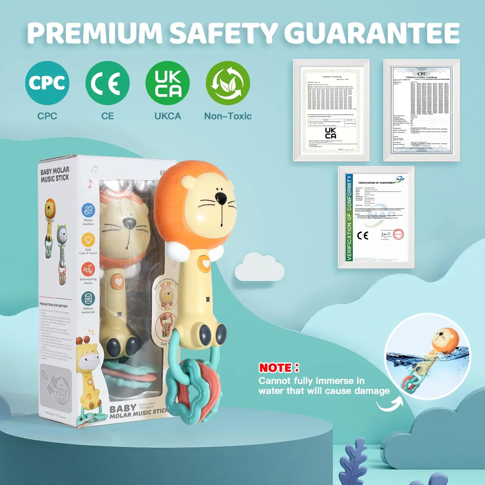EPT Cute Animal Appease Lighting Hand Musical Stick Toys Newborn Baby Rattle