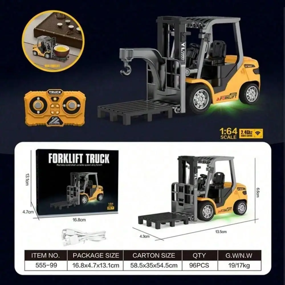 EPT 1/64 RC Forklift with Alloy Toy 8 Channel 2 Mode Mini Remote Control Car Forklift Engineer Truck with Flatbed Tow Truck Toys