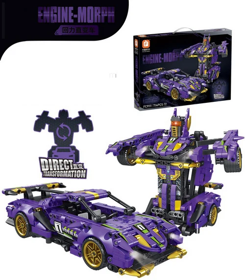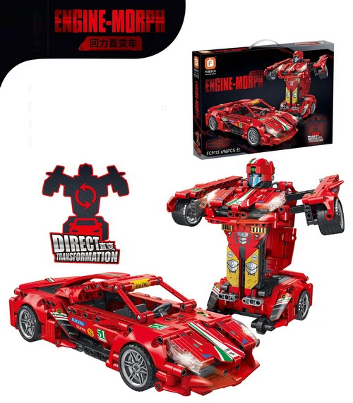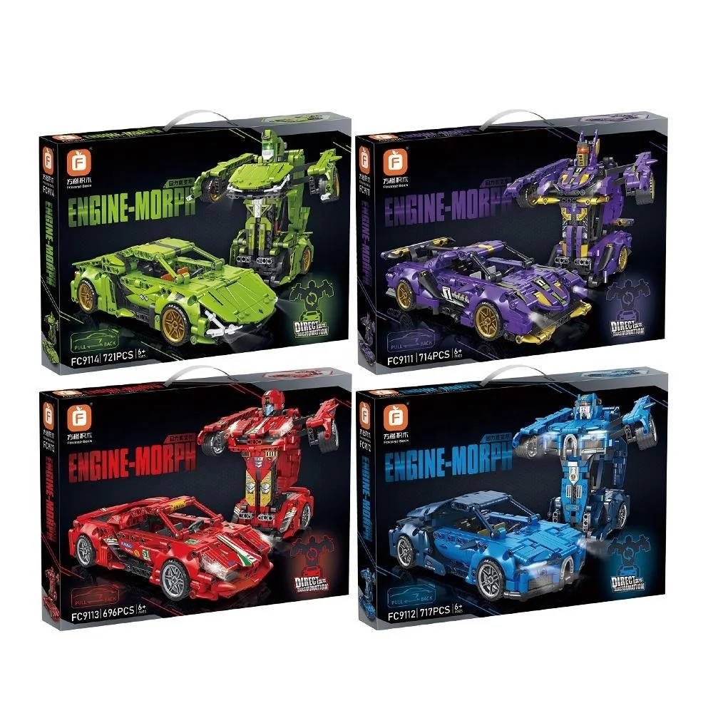 EPT Deformation Car Robot Play Set Toy Pull Back Plastic Simulation Sports Car Model Building Block Toys for Kid