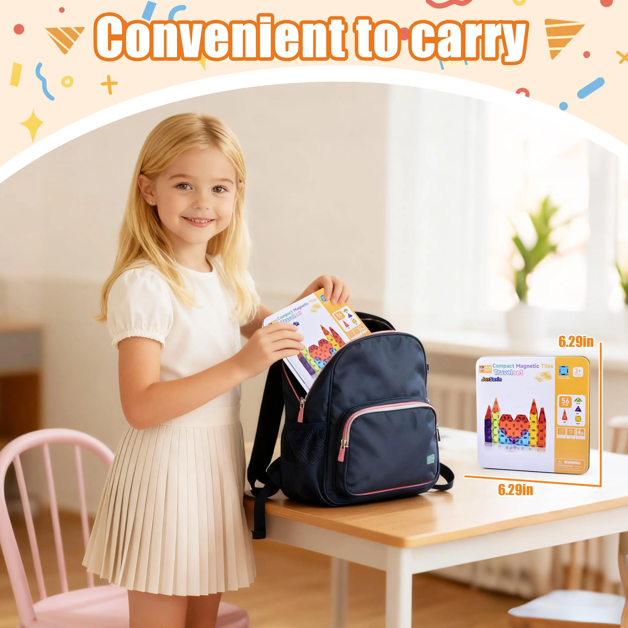 EPT Educational Construction Toy Mini Magnetic Wall Tiles Travel Set-Portable Includes Iron Storage Box