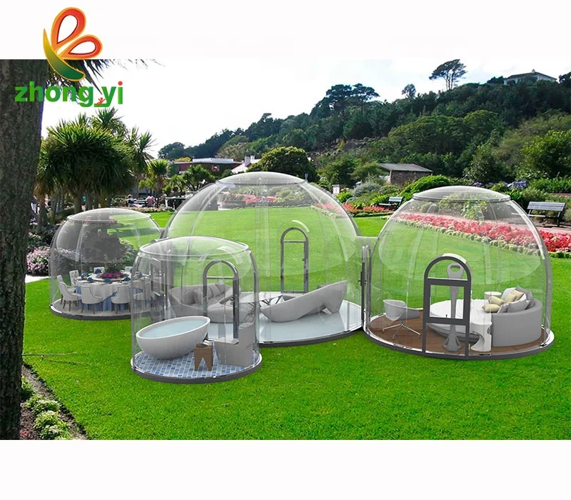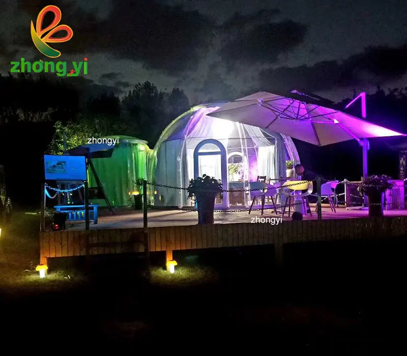 Luxury clear Waterproof Glamping Dome Tent Eco Geodesic Winter Dome with Ac and Toilet