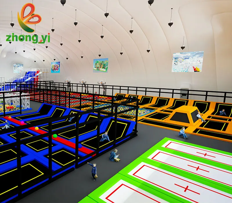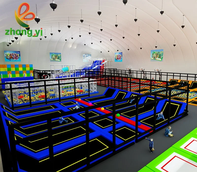 Zhongyi Inflatable Landing airbag Bounce Ninja Warrior Course Kids Indoor Trampoline Park