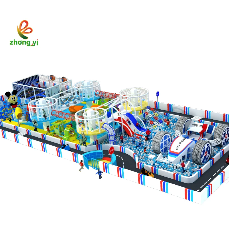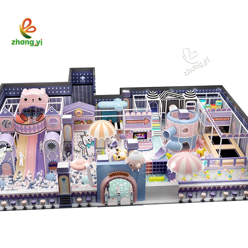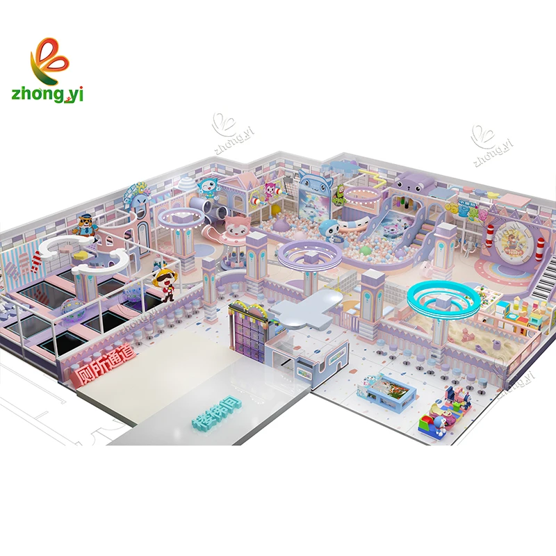 Soft Indoor Toddler Playground Equipment Combined Trampolines Parks with Big Slide and Ball Pit