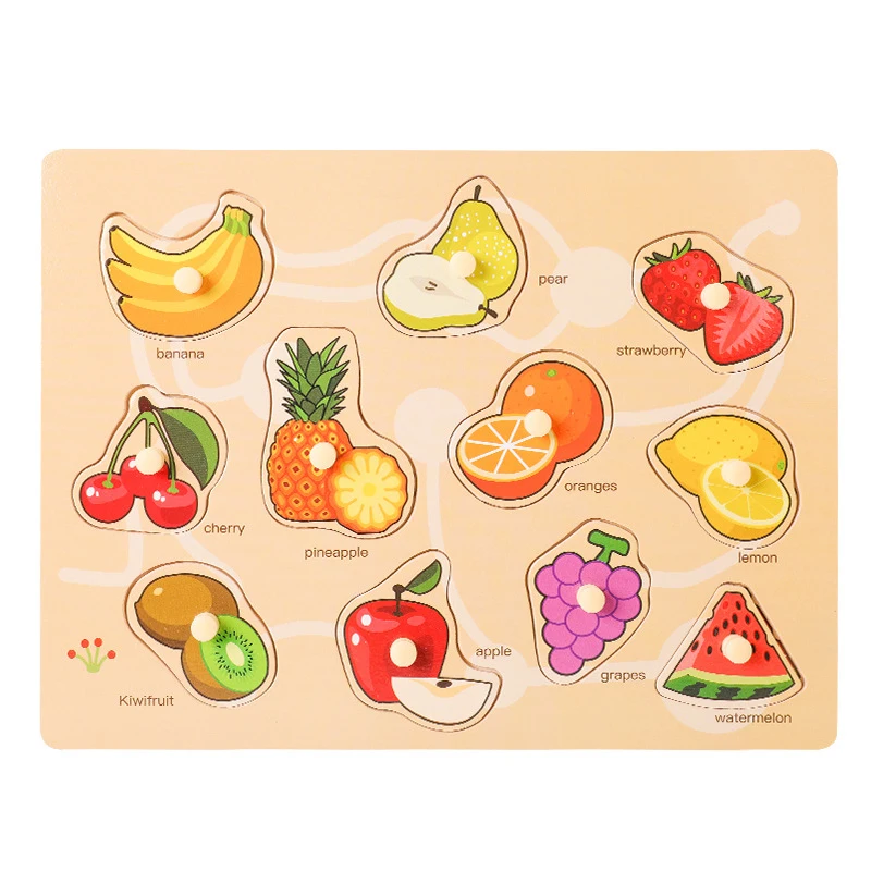 Wooden Toys Jigsaw Puzzle Hand Grasp for Kids Baby Toy Fruit and Vegetables Learning Education Baby Toys