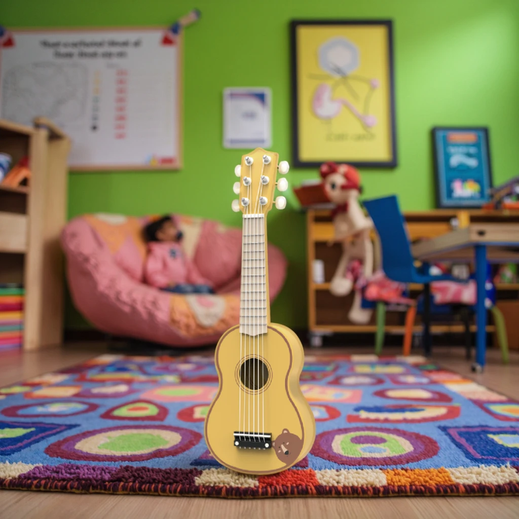 Unisex Montessori Educational Pretend Play Set Nontoxic Wood Guitar Toy for 2-4 Years Safety 36M+ Home Use Kids Toys