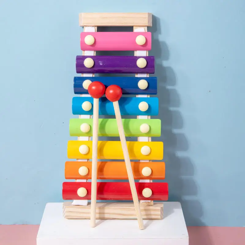 Children Musical Instrument Play Set Toy 8 Note Key Color Hand Knocks Wooden Xylophone for Kids