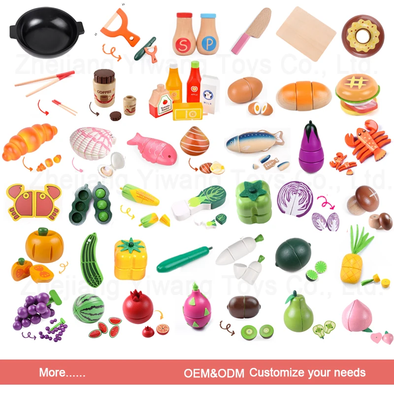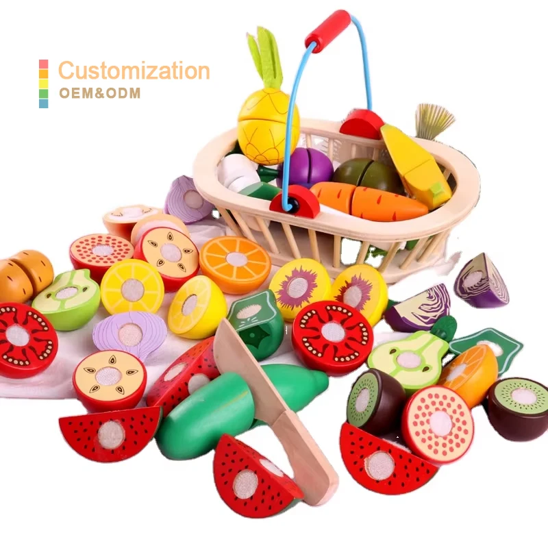 Montessori Educational Toys Kitchen Wooden Cutting Toy Crate of Cut and Play Fruit and Assorted Vegetable Set Pretend Play Toyw