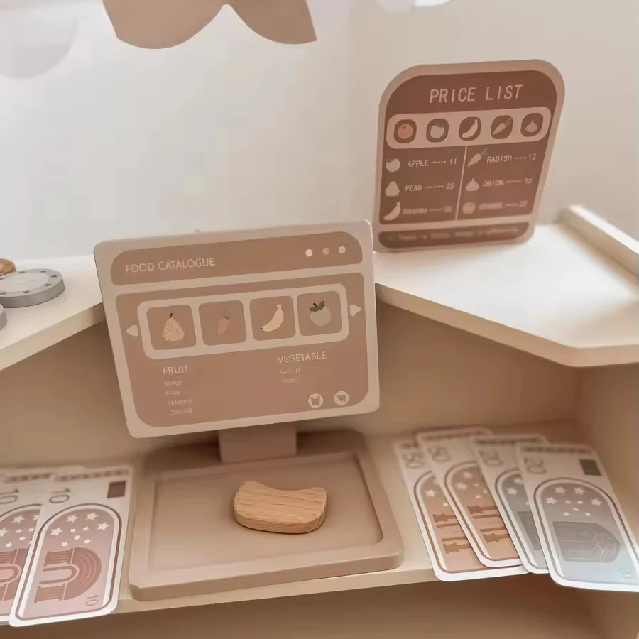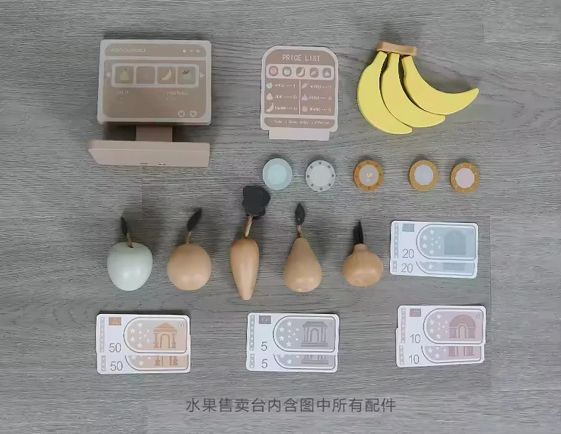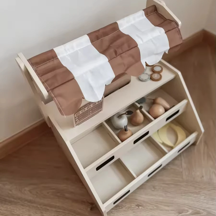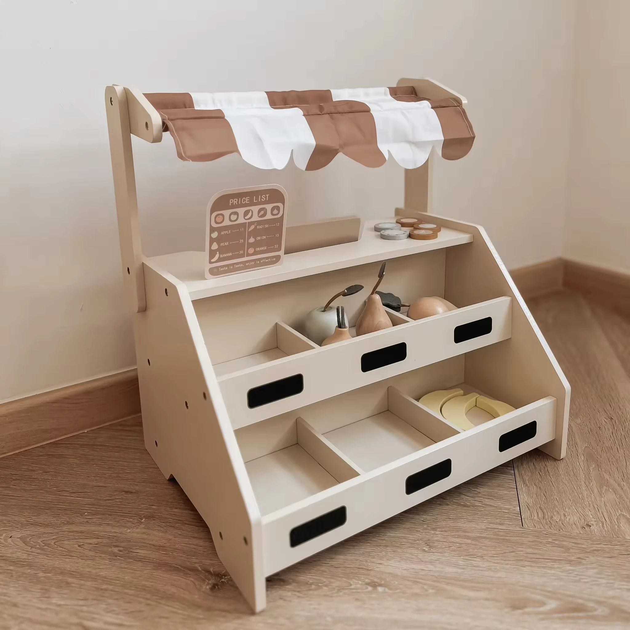 Wooden Montessori Toy Educational Game Market Stall Kids Role Pretend Play Shop Market Mini Fruit Stand Set