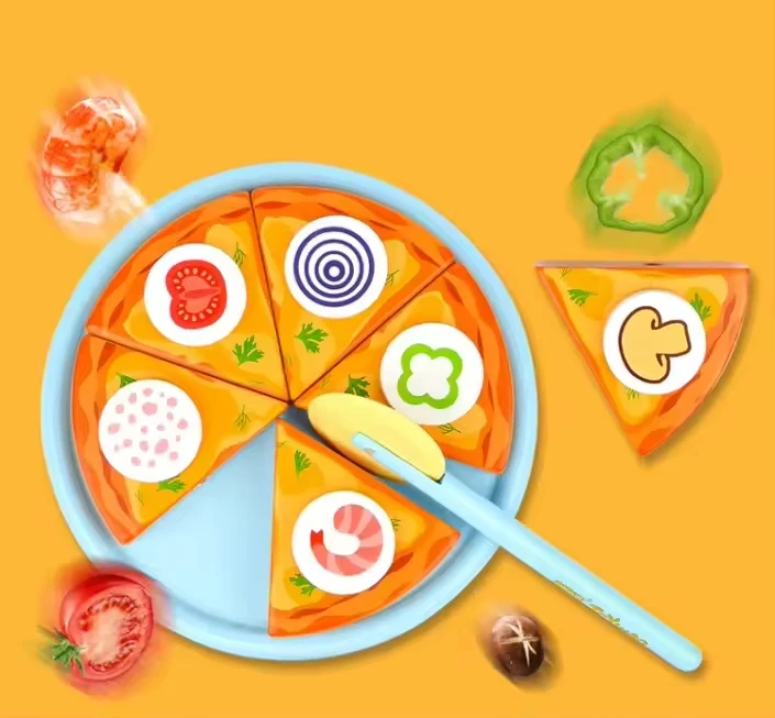 Children's Kitchen Cooking Wooden Magnetic Cut Fruit Toys Vegetables Shiitake Mushroom Pizza Toy Kitchen Cooking House Pizza Toy