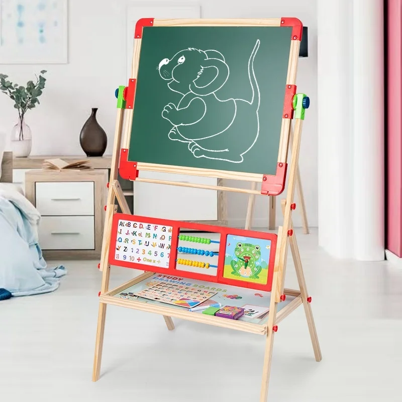 Wooden Folding Multifunction Drawing Small Blackboard Home Use Students Children Graffiti Writing Art Board for Kids Boys Girls