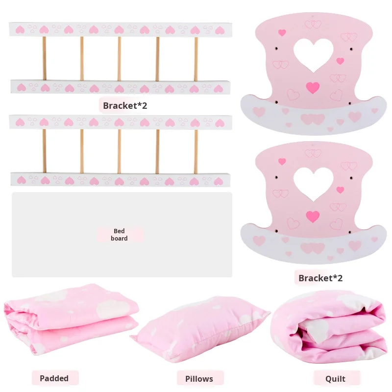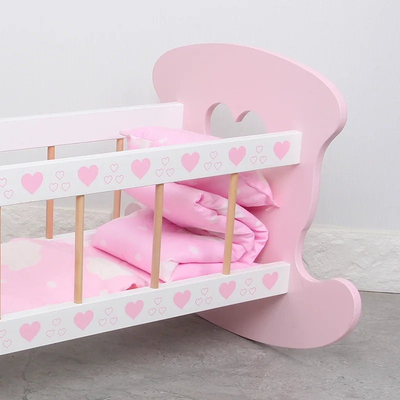 Early Education Wood Simulation Doll Bed for Boys Girls Children's Role-Playing House with Rocking Bed Toy Furniture Baby Cri