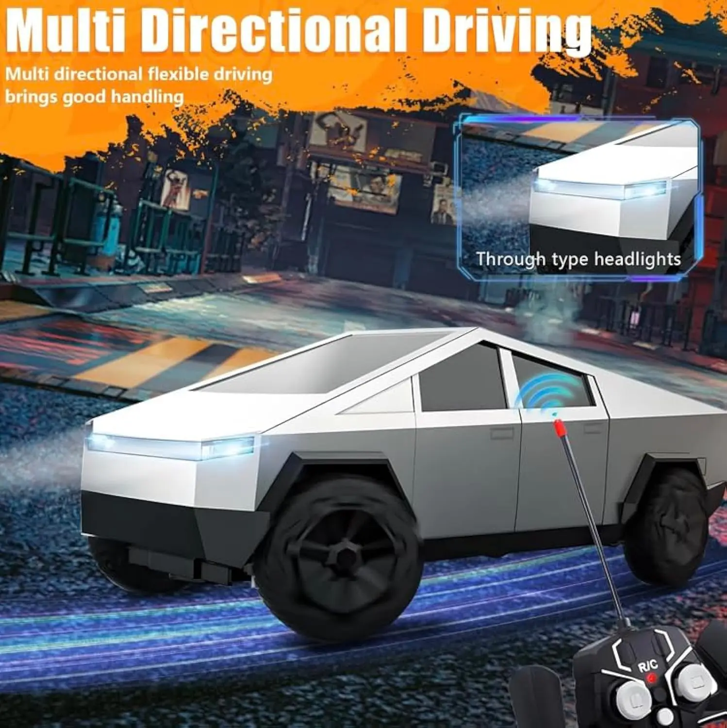 EPT Cyber Pickup Electric Remote Control Car Head Lighting 25CM Wireless Charging RC Road Toy Vehicle for Kids 27MHz