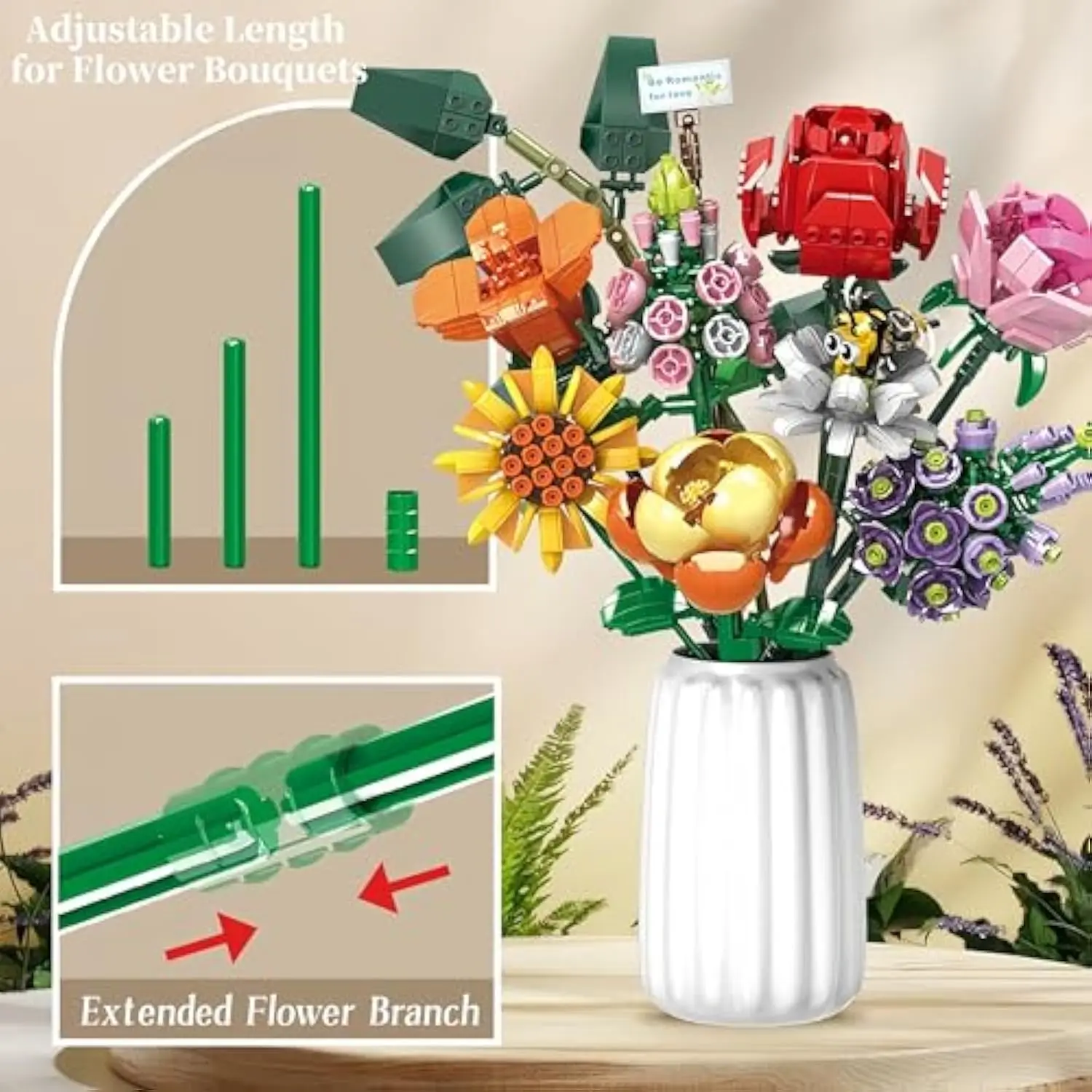 EPT Assemble 8 Flower Brick Bouquet Flower Building Blocks Set Toy With Rose