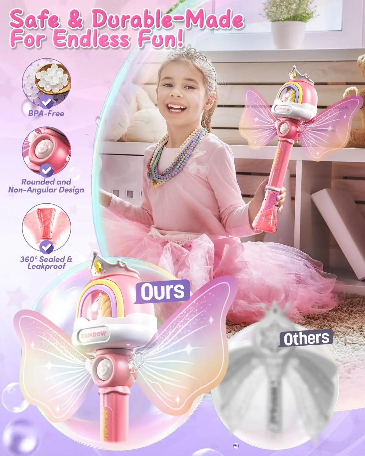 EPT Wholesale Unicorn Mini Bubble Wands Bubble Stick Plastic Automatic Princess Toys Outdoor Bubble Blower Machine