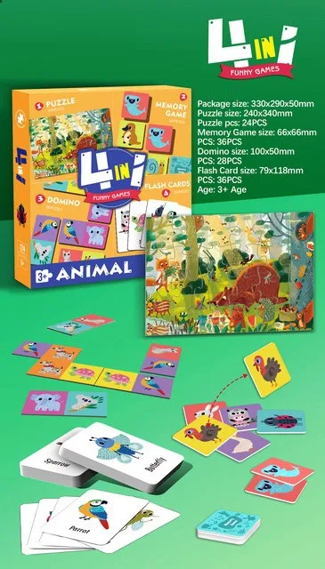 EPT Custom 4 in 1 Puzzle Toy Set Memory Game Matching Jigsaw Puzzle Flash Cards Cartoon Childhood Educa Puzzles for Kids Toys