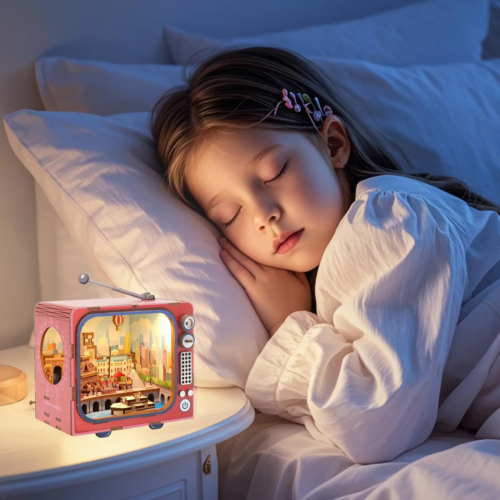 EPT Creative Gift Wooden 3d Tv Set Building Puzzle Mini Kit Building Toy Miniature Doll House Diy Toys for Kids