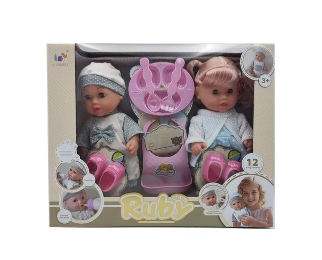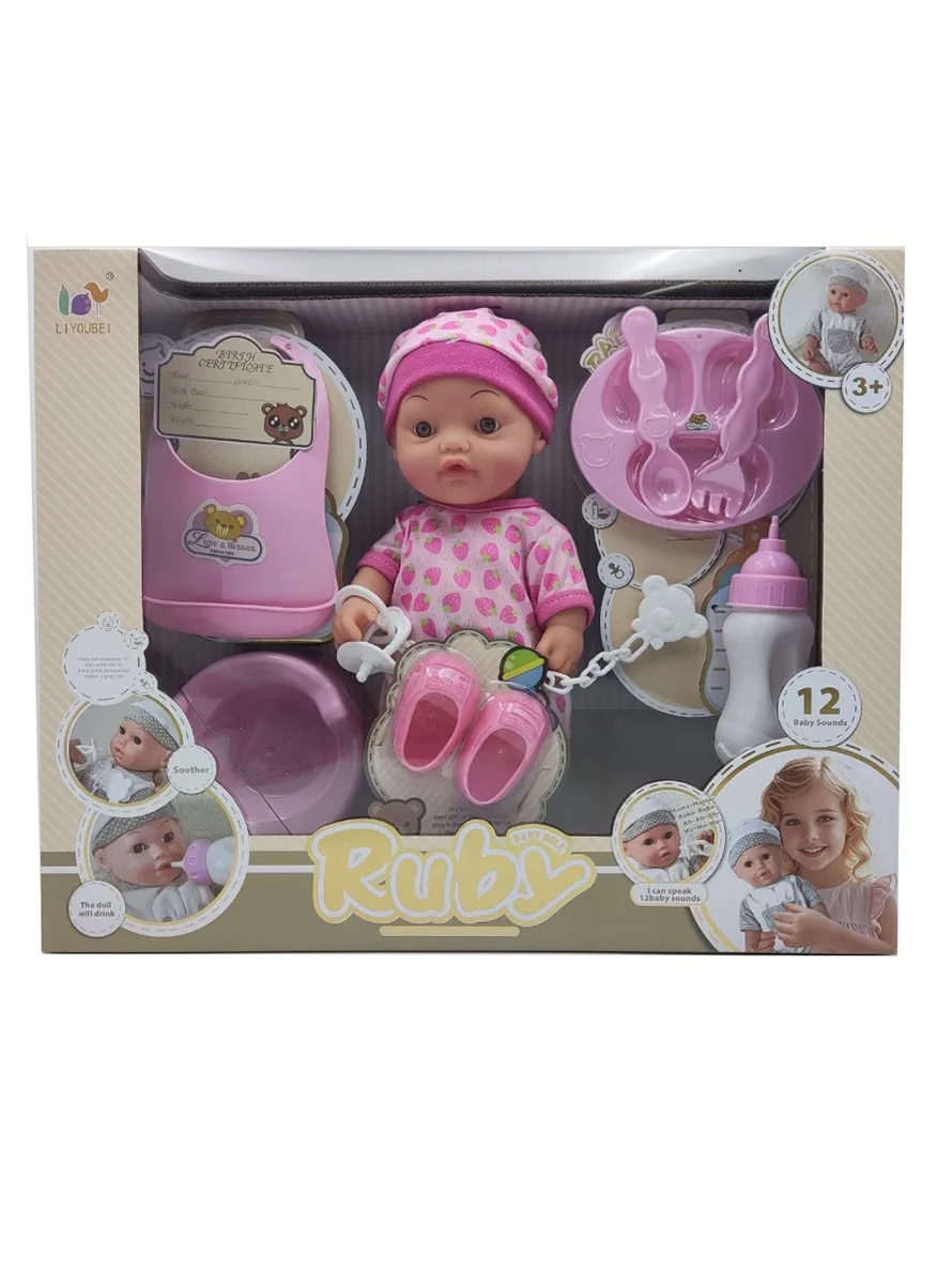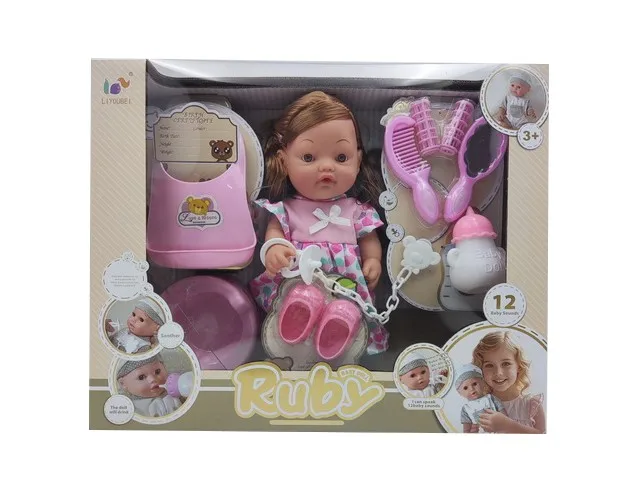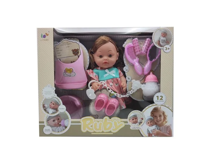 EPT 12 Inch English 12 Sound Ic Water Baby Dolls Toys With Urine Basin Diaper Absorbent Bottle Tissue Box Backpack