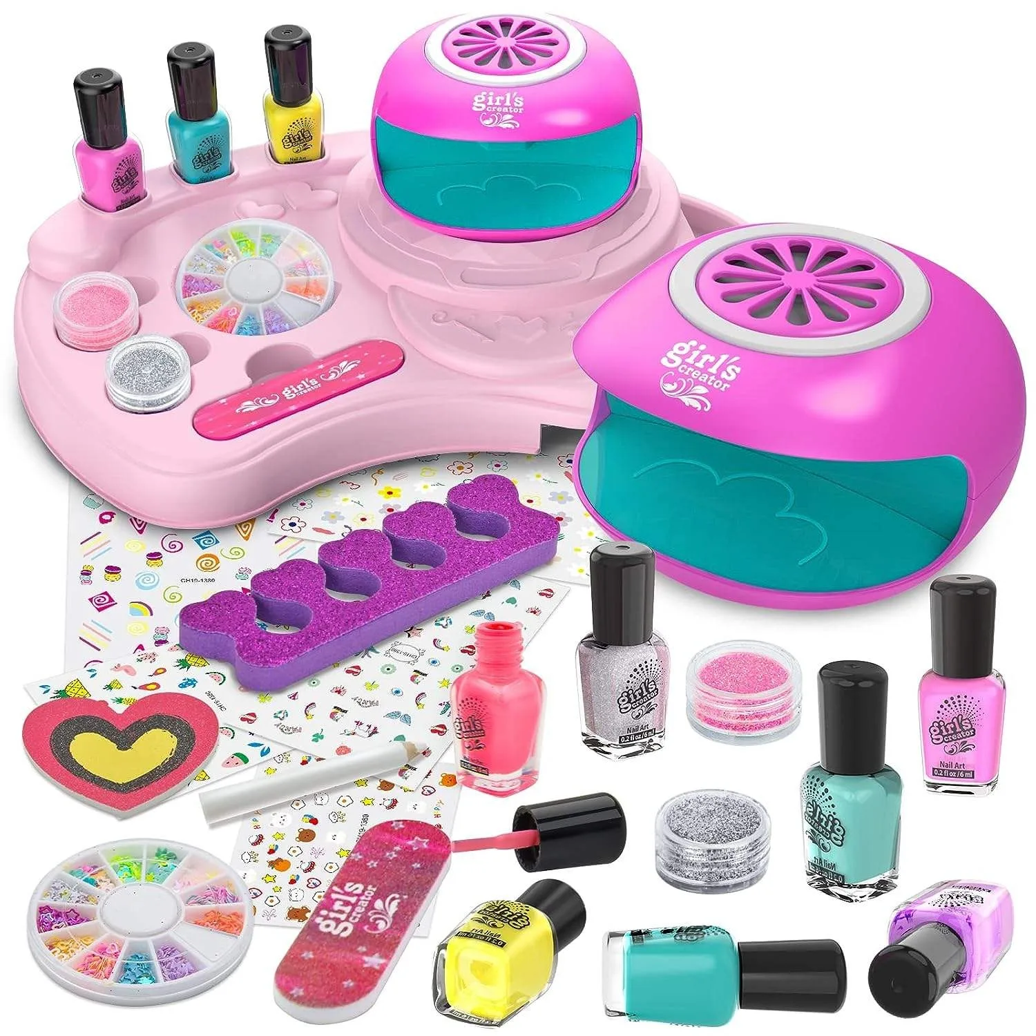 EPT Girl Nail Art Salon Set with Nail Dryer Machine Nail Polish Makeup Manicures Kit Toys for Kids