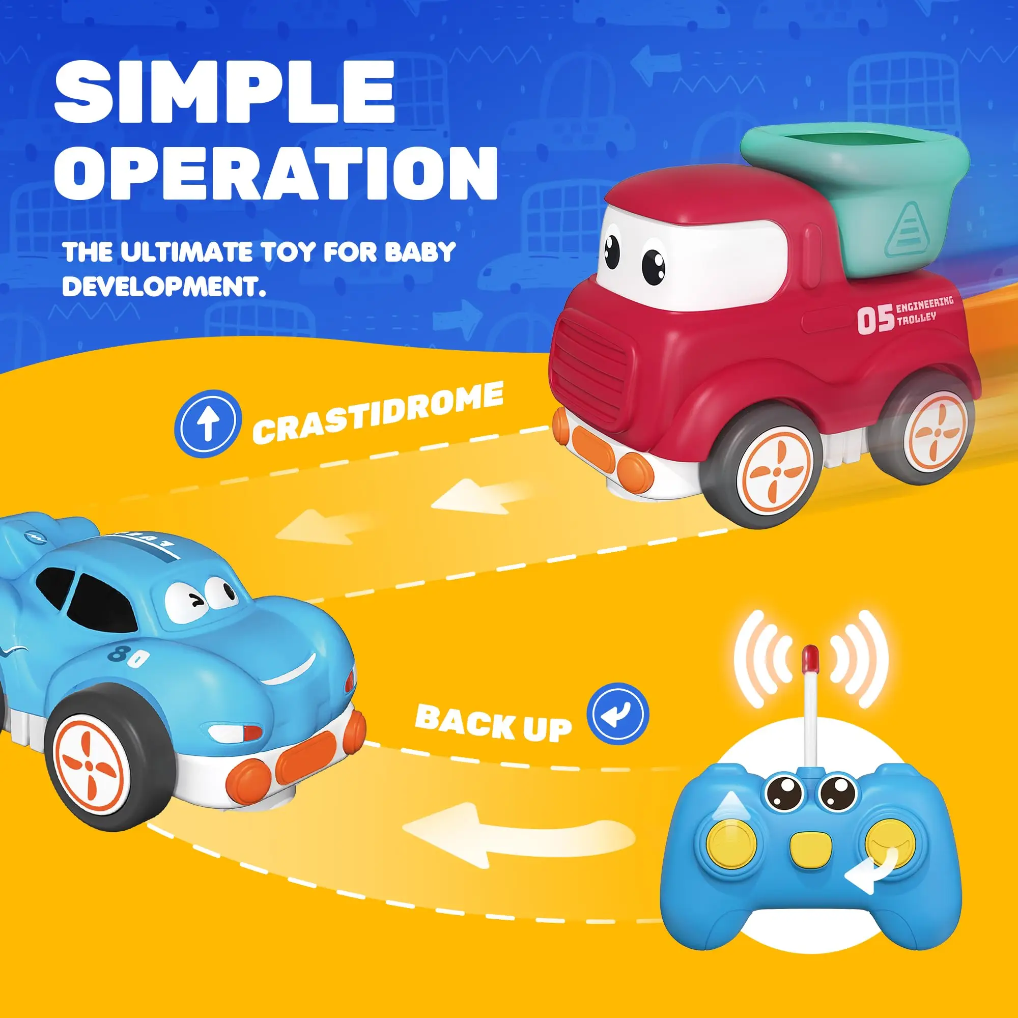 EPT NEW Arrive Musical Toy Rc Car Rechargeable Battery Cartoon Rubber Remote Control Car With Light